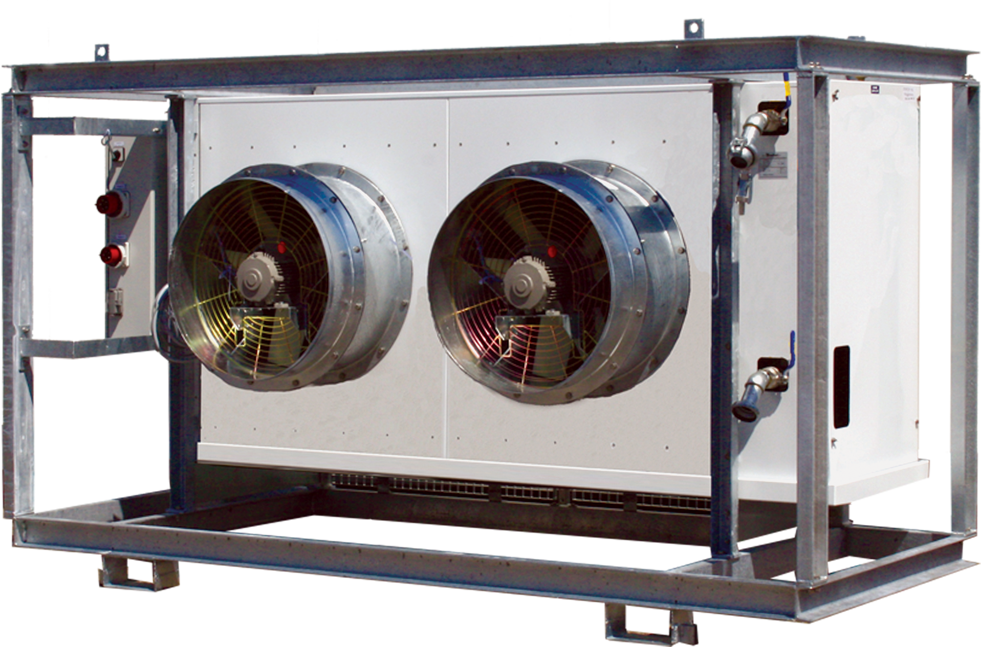 Geräuscharmes Lüftungsgerät mit einer Heizleistung von 14 kW. Die Einheit ist mit Belüftungsregelung ausgestattet. Das Lüftungsgerät wird mit Schnellkupplungen geliefert und ist schnell einsatzbereit. Die Justierung und Bewegung kann einfach mit einem Hubwagen oder Gabelstapler durchgeführt werden.