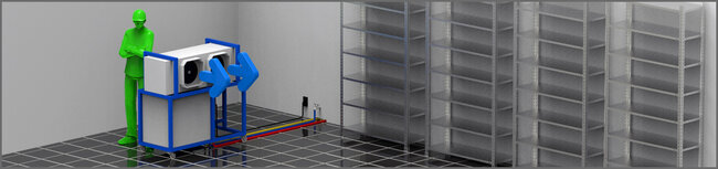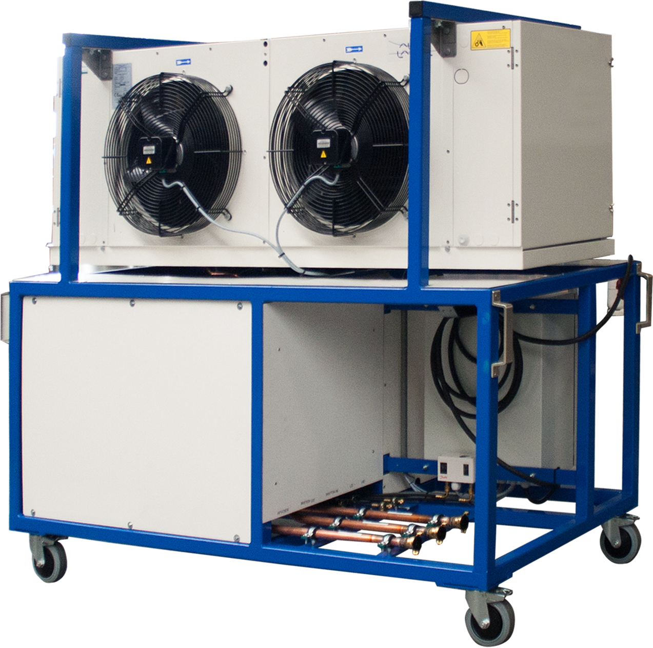 Unité de climatisation d’une puissance frigorifique de 20 kW lors d’une température ambiante de 20 °C (utilisable jusqu’à 2 °C). Équipée d’un double ventilateur et montée sur un cadre robuste avec des roues pivotantes qui facilitent le déplacement. Garantit un débit d’air élevé, elle est prête à brancher et facile à installer grâce aux raccords rapides.