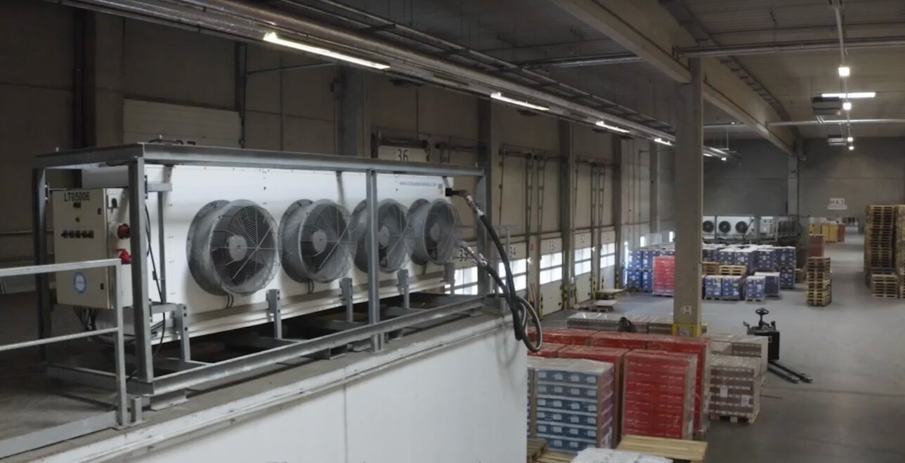 Les centrales de traitement d'air sont équipées d'une régulation de ventilation et d'un dispositif de dégivrage, de sorte qu'elles conviennent parfaitement aux applications à basse température. Ensemble, le refroidisseur et les appareils de traitement de l'air veillent à ce que les denrées alimentaires dans l'entrepôt restent en permanence entre 16 et 18 degrés Celsius pendant les mois d'été. L'agréable contact avec Gronotte Logistik contribue au succès de ce projet qui revient chaque année.