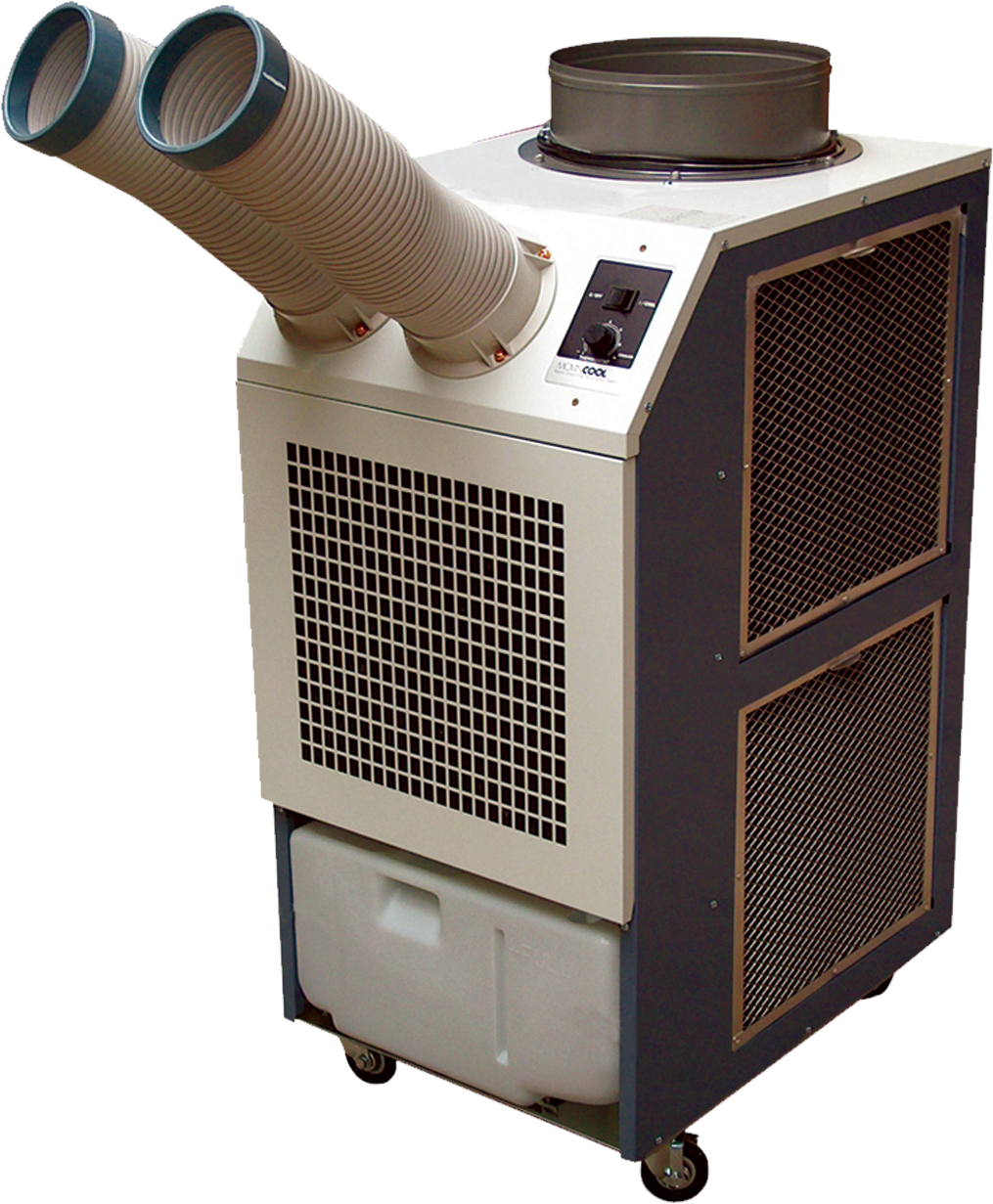 Robust, mobile Denso spot cooler with a 4.33 kW cooling capacity. The unit features two flexible directable exhaust hoses and a high-performance fan, enabling high air output on both the evaporator and the condenser side. The unit is ideal for direct spot cooling in larger rooms and for cooling server rooms.