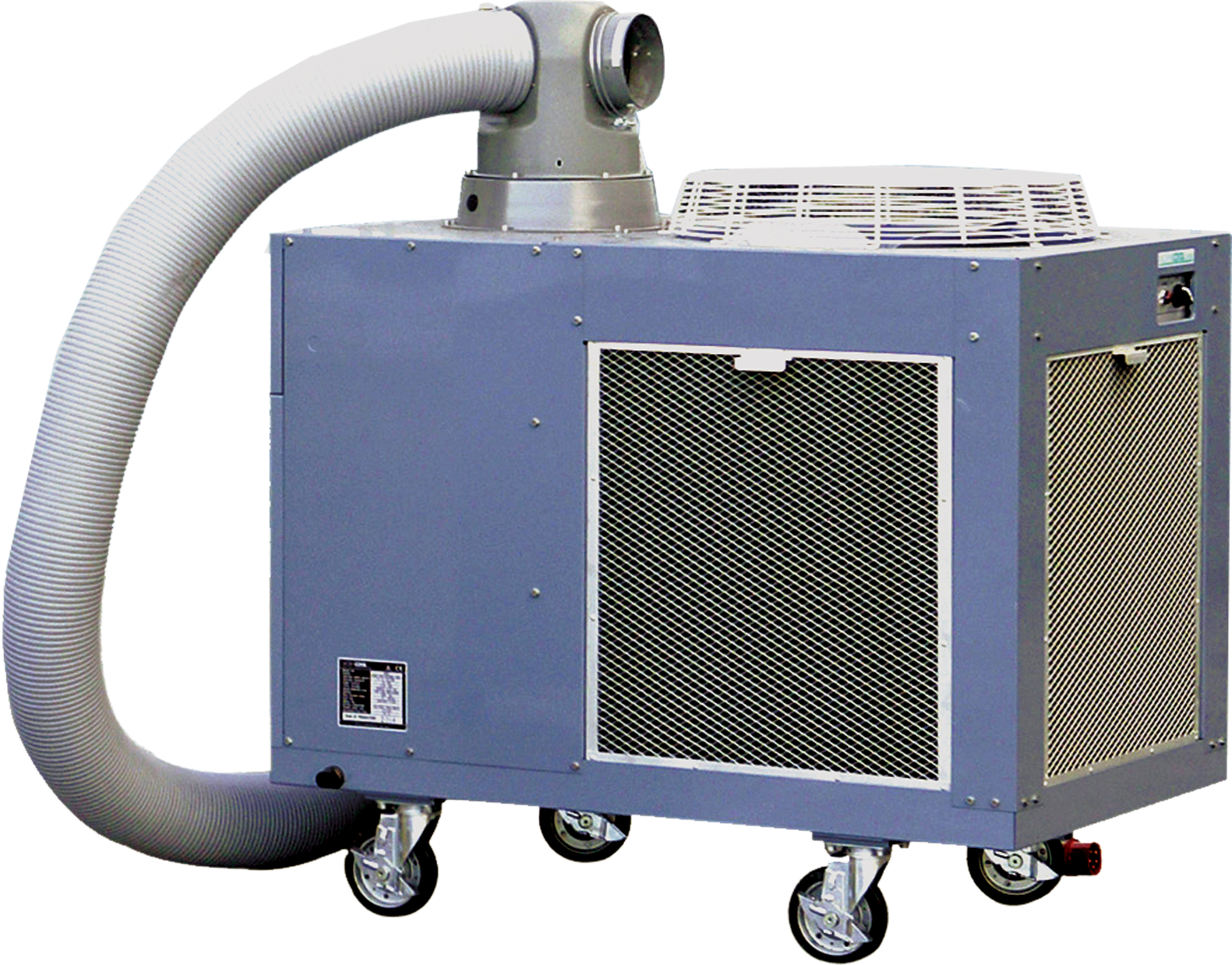 Robust, mobile Denso spot cooler with a 16 kW cooling capacity. The unit features three flexible directable exhaust hoses and a high-performance fan, enabling high air output on both the evaporator and the condenser side. The unit is ideal for direct spot cooling in larger rooms and for cooling server rooms. The unit can be located both indoors and outdoors.