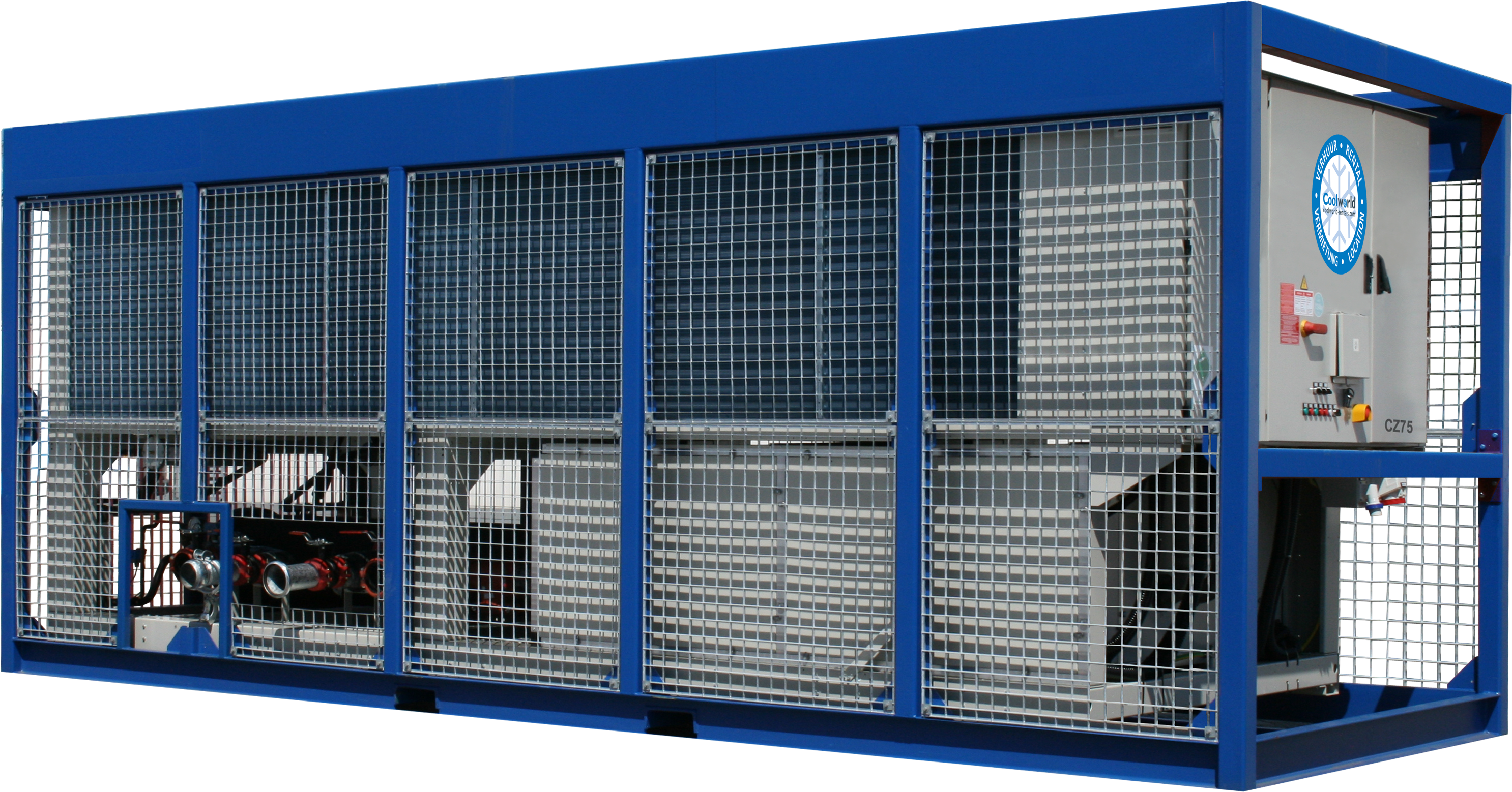 Air-cooled chiller with a cooling capacity of 750 kW. The chiller is equipped with two stepless monoscrew compressors and has a range from 13 to 100%, with an ESEER value of 4.01. The machine is energy-efficient, low-noise and plug and play. The chiller is fitted in a solid frame with condenser protection in the form of an impact-resistant grid, and can be easily moved by forklift truck or crane.