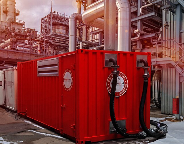 At Heatworld you will find electrical as well as gas- and diesel fired boilers. The industrial boilers are equipped with modulating Low NOx burners (class 3). This reduces the fuel consumption to a minimum. As a result, the lowest emission and also noise standards are achieved. The units are protected to a standard pressure of 6 bar. For higher pressures, separate heat exchangers can be used for a range up to 10 or 16 bar. With the smart control and remote monitoring, connection to existing building (management) systems is possible. The containerized boilers can also be combined with all rental equipment from Coolworld for processes and climate control: